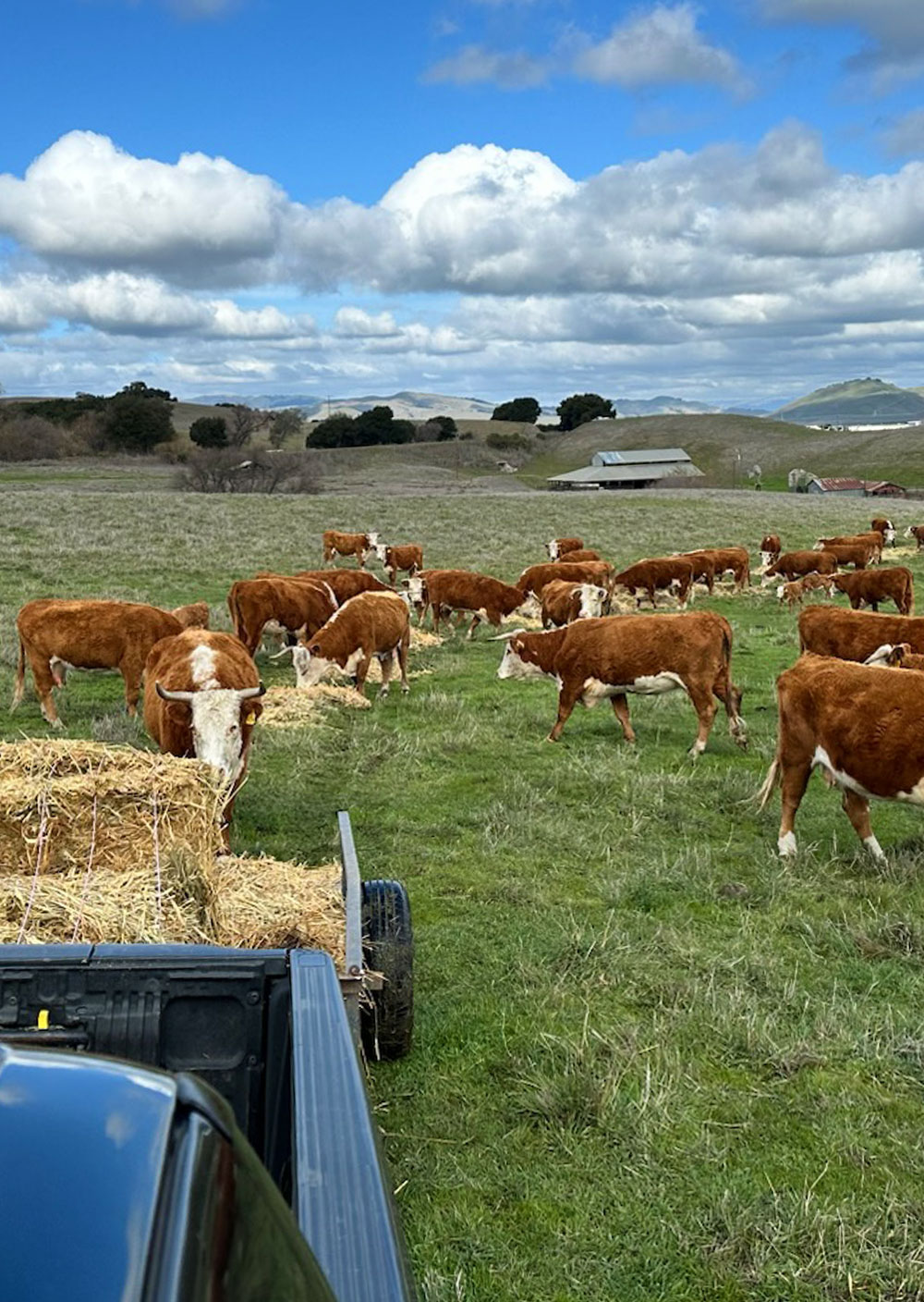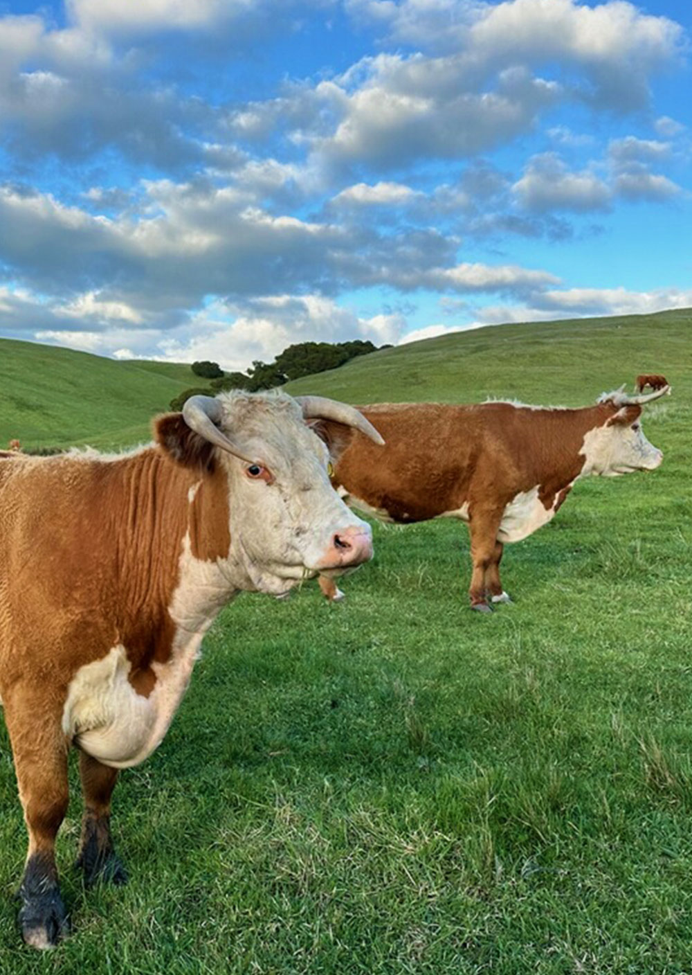 Any steer purchased from Nyland Herefords will have been born and raised here on our ranch, benefiting from our commitment to animal husbandry in the open pastures of San Juan Batista, CA. With continuous desire to enhance our care practices and nutrition, we guarantee our animals are of the highest quality on the market.
